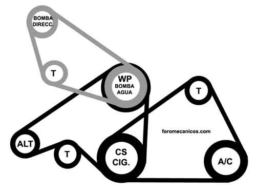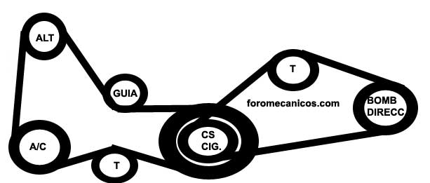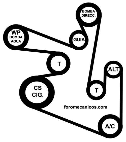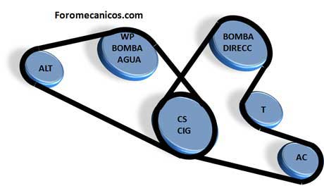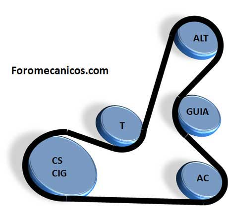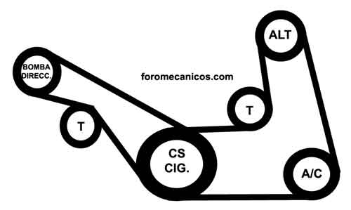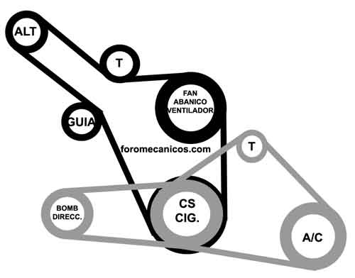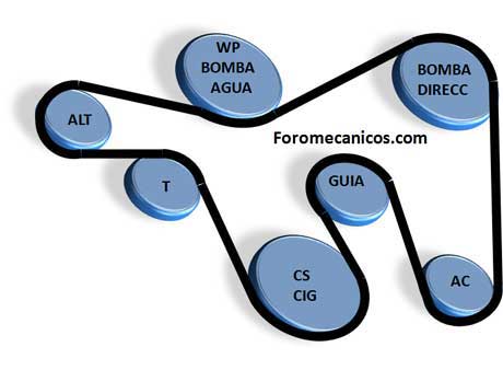 Descripcion: 1 - AC - Aire Acondicionado - Air Conditioning 2 - AP - Air Pump - BA Bomba de aire 3 - CS - CIG - Ciguenial 4 - F / VENT - Fan - Ventilador 5 - G - Guide - Guia 6 - GEN / ALT - Alternator / Alternador 7 - HP / BH - Hydraulic Pump / Bomba Hidraulica 8 - PSS / Power Assisted Steering - BOMBA DIRECCION - Direccion Asistida 9 - SC / Super Charger - SUPER CARG - Super Cargador 10 - T - Tensor / Tensioner 11 - VP Vacuum Pump / Bomba de vacio 12 - WP - Water pump / Bomba de agua ver: indice/index : todas las marcas |