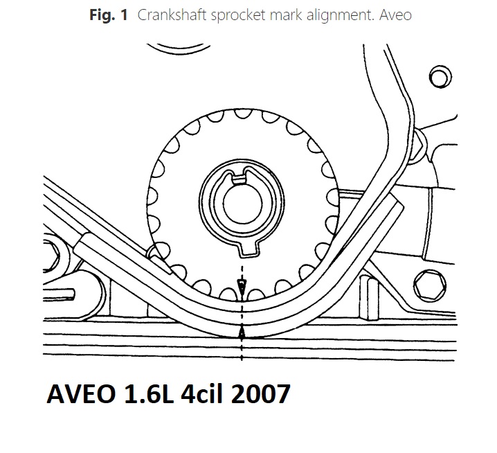 20.Ensure the crankshaft sprocket timing marks are still properly aligned, Fig. 1.