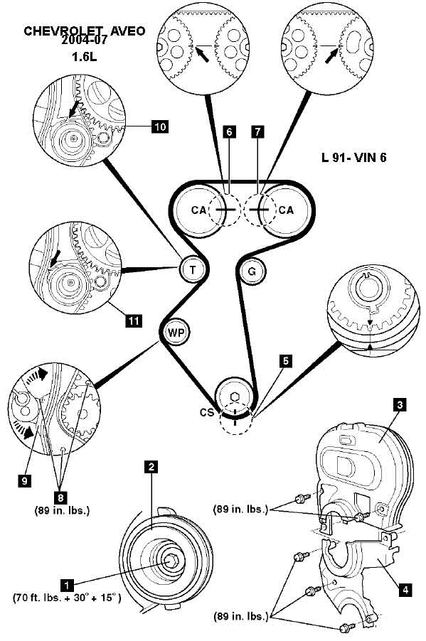 31.Install the timing belt lower front and upper front covers. Torque the bolts to 89 inch lbs.